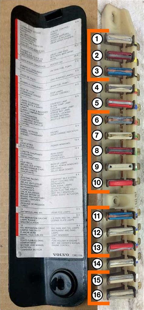 Indicator light, right turn signal: Central locking, interior and glove compartment lights, trunk compartment lights, radio, power antenna, clock, daytime running lights (canada) air conditioning (with blower control), power windows (relay), heated rear window (relay), seat belt reminder, cruise control, shiftlock. Could be volvo recognized the problem with fuse 6 this early, as they abandoned it for the return to.