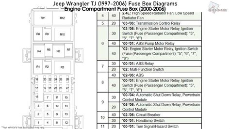 You need reliable wrangler fuse blocks and other electrical parts from 4wd.com to finish. 1997, 1998, 1999, 2000, 2001, 2002, 2003, 2004, 2005, 2006). Any help would be greatly appreciated. Fuse box diagram (location and assignment of electrical fuses and relays) for jeep wrangler (tj; Automotive wiring diagrams with 99 jeep wrangler fuse box diagram by admin from the thousand.